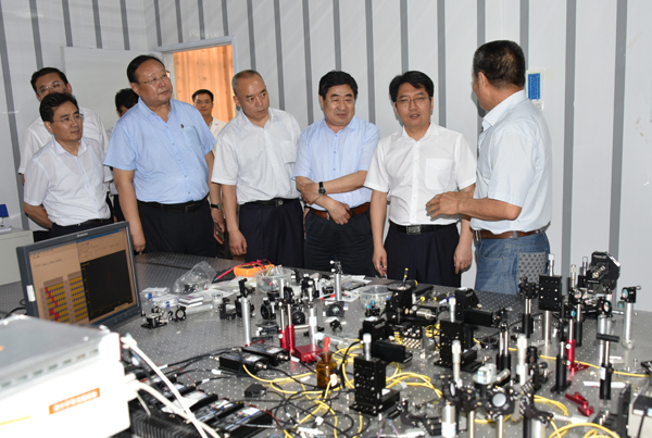 邓云锋一行实地考察了学校多光子纠缠与操纵实验室、量子弱测量实验室,听取了实验室负责同志关于实验室建设情况、研究方向、发展前景、科研进展的介绍。邓云锋对实验室建设和取得的成绩给予充分肯定,希望学校抓住当前机遇,加快成果转化,促进量子信息技术在山东的推广和应用。邓云锋一行还现场考察了校园环境,考察过程中,邓云锋不时与学校领导交流,了解学校办学情况,询问发展中遇到的实际问题,表示将为学校发展提供更多的政策支持。