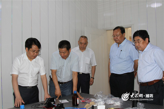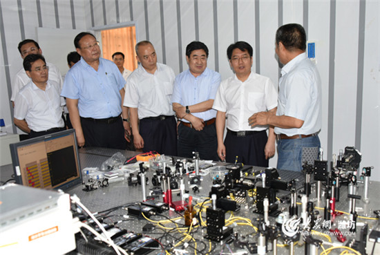 邓云锋一行实地考察了潍坊学院多光子纠缠与操纵实验室、量子弱测量实验室,听取了实验室负责同志关于实验室建设情况、研究方向、发展前景、科研进展的介绍。邓云锋对实验室建设和取得的成绩给予充分肯定,希望学校抓住当前机遇,加快成果转化,促进量子信息技术在山东的推广和应用。邓云锋一行还现场考察了校园环境,考察过程中,邓云锋不时与学校领导交流,了解学校办学情况,询问发展中遇到的实际问题,表示将为学校发展提供更多的政策支持。