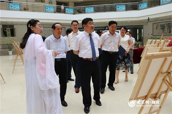 [提要]6月22日上午,第三届山东省大中学生社团节—传统文化类社团优秀成果竞赛获奖作品展在潍坊学院图书馆一楼中厅举办。潍坊学院党委书记孙文亮、党委副书记王清明、副校长丁子信、赵光强莅临参观。