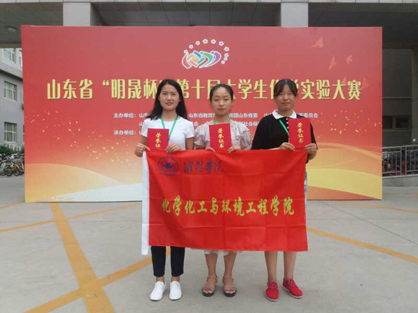 本网讯 7月20日至7月24日,第十届山东省大学生化学实验技能大赛举行。化学化工与环境工程学院派出的三名同学均获奖。2015级化学专业的薛荣(图左)荣获一等奖,孙亚楠(图中)荣获二等奖,冯明慧(图右)荣获三等奖。