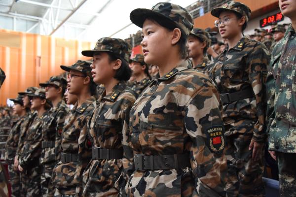 学校各职能部门、各学院负责同志,军训团全体教官和2018级全体新生参加了典礼。