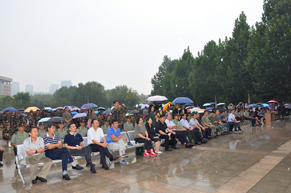 学校领导冯滨鲁、王清明,施训部队军训团团长邵帅,学校有关学生工作的部门负责人以及全体军训教官和新生观看了比赛。