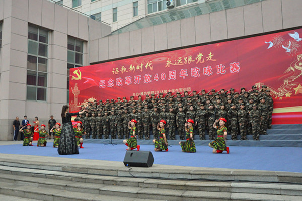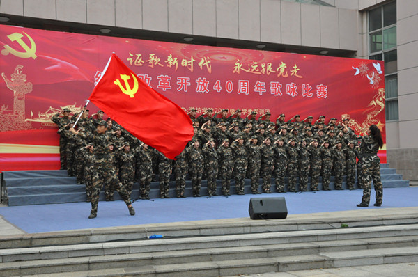 本网讯 “迎着风雨、旗帜飘扬,坚定跨越世纪沧桑,我们是中国共产党!”豪迈激昂的歌声震撼着心灵,一首首雄壮、嘹亮的歌声在校园中响起。为纪念改革开放40周年,9月18日,学校举行“讴歌新时代,永远跟党走”2018级学生军训团歌咏比赛。