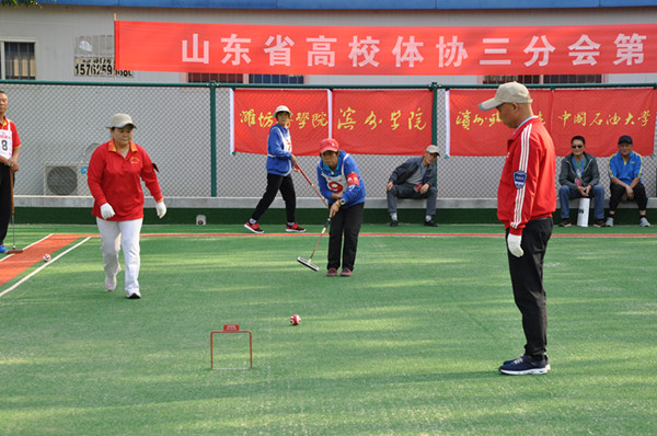 26日下午,第28届“院校杯”老年门球赛在我校门球场地开幕,王清明、中国石油大学(华东)党委原副书记钱锡俊同志共同为比赛开球。经过激烈角逐,我校门球队在8所高校的参赛队伍中获得了第四名的较好成绩。