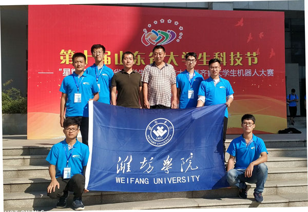 本网讯 9月21日至22日,2018年第十届山东省大学生科技节——“星辉杯”山东省智能制造大赛暨齐鲁大学生机器人大赛在济南大学举行。我校机电与车辆学院解福祥和王伟章两位老师带领学生参了大赛决赛,共有8项作品获奖。其中“可变排列多组刀刃式植被塑型机”作品获得一等奖,另外还取得了二等奖3项、三等奖4项的好成绩。