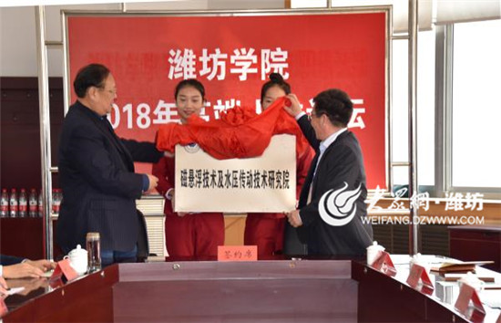会上,冯滨鲁代表潍坊学院与山东省泰山产业领军人才李永胜等3名高层次人才现场签约并为其颁发聘书,为潍坊学院磁悬浮技术及水压传动技术研究院、潍坊学院海洋岩土工程研究中心揭牌。