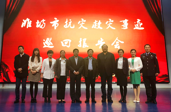 本网讯 为弘扬抗灾救灾精神,进一步动员全市上下团结一致、万众一心,坚决打赢灾后重建攻坚战,市委宣传部、市文明办牵头组建了潍坊市抗灾救灾报告团,在全市开展巡回报告。10月24日,报告团来我校举办巡回报告会,5名来自我市抗灾救灾战线的报告团成员分别作报告。报告会由党委书记孙文亮主持。