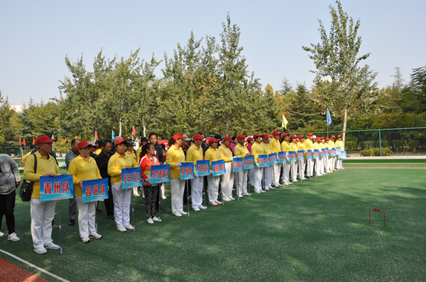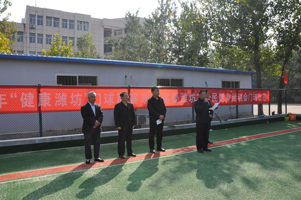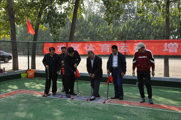 本网讯 为全面落实“健康潍坊”战略,推动全民健身活动和老年人体育事业蓬勃开展,10月24日,2018年“健康潍坊”门球联赛季后赛暨“庆国庆·迎重阳”全民健身运动会门球比赛在我校门球场举行。来自寿光市、青州市、诸城市、高密市、临朐县、潍坊市区的共24支代表队及裁判员共280人参加了开赛仪式。学校党委副书记王清明为比赛开杆。潍坊市体育总会、潍坊市老年体协及潍坊学院离退休老干处的相关负责同志一同参加了仪式。