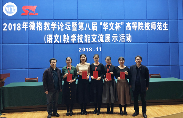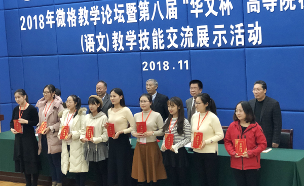 经过激烈角逐,我校还荣获第九届“华文杯”全国高等院校师范生教学技能(语文)大赛承办权,该项赛事2019年将在我校举办。