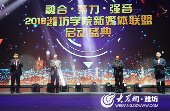 在与会人员的见证下和热烈的掌声中,孙文亮、王清明、宋全政、潘月杰共同启动大屏幕,标志着潍坊学院新媒体联盟正式成立。