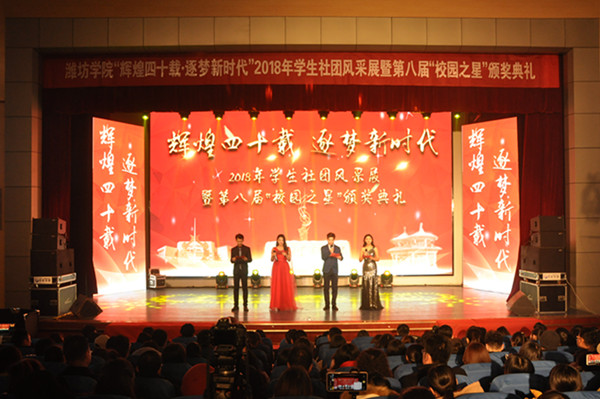据了解,本届“校园之星”评选活动,从各学院初选、网上投票、公开答辩、现场投票到今天的颁奖典礼,历时一个多月的时间。经过层层选拔,最终产生的笃志好学之星、青春活力之星、勤奋自强之星、志愿公益之星、宣传创作之星、创新创业之星六个类别60位获奖个人,涵盖全校21个学院的优秀学生代表。此外,在今年的11、12月份,学校举办了第十一届学生社团文化节,全校62个校级社团、75个系级社团竞相争艳,无论是从各社团的展示情况,还是从学生的参与度来看,都充分展现出潍院大学生社团发展的欣欣向荣和生机勃勃之象。