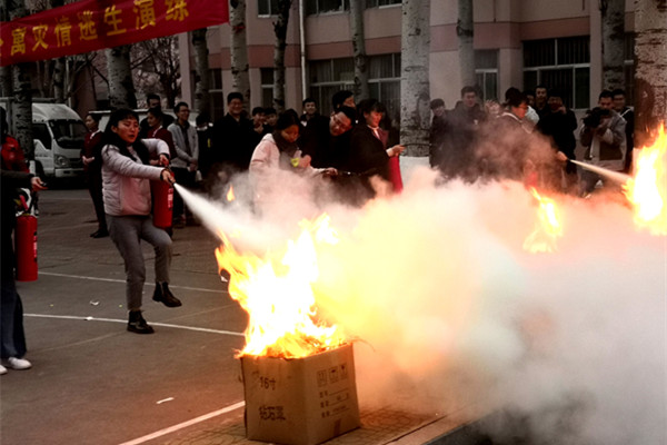 在王清明宣布演练开始后,四号、五号公寓楼警报声随之响起,同学们用湿毛巾捂住口鼻,弓身弯腰,在消防队员的引导下沿应急预案中规定的路线从逃生出口迅速跑出,到达各集合疏散地点。整个演练过程既紧张又有序,达到了安全逃生演练预期的目标和要求。随后,消防队员表演了高楼迅速下降、伤员救助等科目,为老师和同学们讲解了地震逃生要领以及灭火器的使用方法。部分老师和同学分组现场进行了灭火操作,并领取了安全知识读本和画册等。最后,王清明对于此次演练进行了总结讲话,他强调要进一步把学校的安全工作做好做实,把公寓中各种安全隐患消灭在萌芽状态,为建设平安公寓、和谐校园而不懈努力。