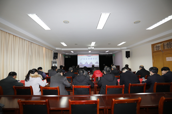 本网讯 1月25日,2019年全省教育工作视频会议召开。学校领导冯滨鲁、朱猷武、赵光强,机关部处主要负责人及相关人员在我校分会场收看。