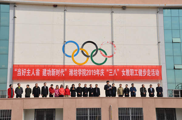 下午,“当好主人翁,建功新时代”潍坊学院第四届女教职工健步走活动在校体育场举行,党委副书记王清明出席启动仪式并致辞,他代表学校向全校女教职工送上节日的问候并鸣枪宣布活动开始。活动现场,大家健步如飞,在热烈的气氛中欢度自己的节日。健步走活动,丰富了教职工的业余文化生活,增强了团队凝聚力。活动结束后,凡参与活动的女教职工都领到了活动奖品。