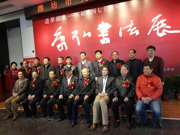 本网讯 3月16日,由潍坊学院等主办的“追梦经典——庆祝建国七十周年”康弘书法展在潍坊市美术馆一楼隆重开幕,拉开了我校老干部“庆祝建国七十周年”书画展的序幕。我校党委副书记王清明出席展览并致辞,离退休工作处负责同志主持了开幕式。
