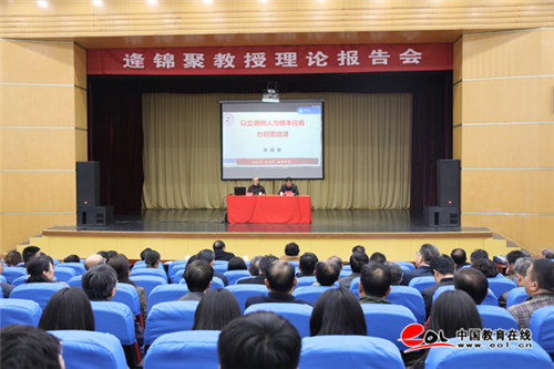 中国教育在线讯 4月11日,潍坊学院在闻韶楼报告厅召开党委理论学习中心组(扩大)学习会,专题学习习近平总书记在学校思想政治理论课教师座谈会上的重要讲话精神,学习会邀请了座谈会参加者、潍坊学院杰出校友、潍坊学院马克思主义学院名誉院长、南开大学逄锦聚教授作辅导报告。潍坊学院党委书记孙文亮,党委副书记、校长冯滨鲁,党委委员马茜华、赵光强、王旭升出席学习会。