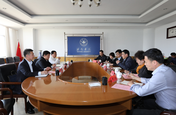 本网讯 5月7日,市文联主席肖建华等一行3人来校调研,校党委书记孙文亮在会见时表示,作为潍坊人民的大学,服务潍坊人民的文化事业需求是学校责无旁贷的责任和义务,学校愿意与潍坊相关单位开展积极合作,为潍坊市的文化事业发展做出贡献。