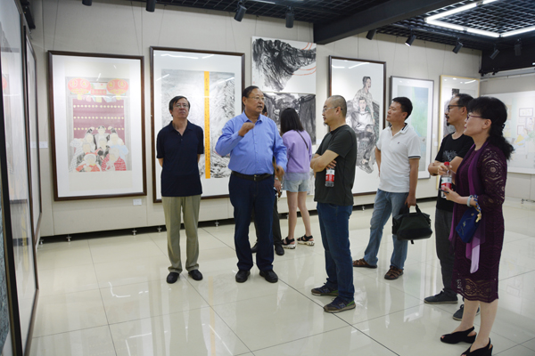 本网讯 6月11日上午,美术学院2019届毕业生作品展在学校创业孵化基地二楼美术馆开展。校长冯滨鲁、副校长丁子信参观了展览。