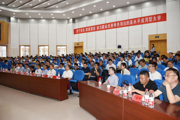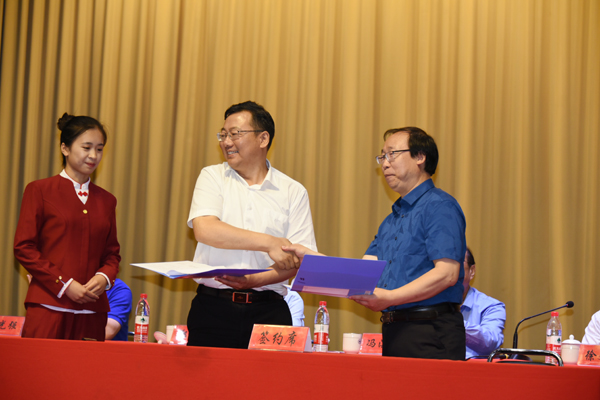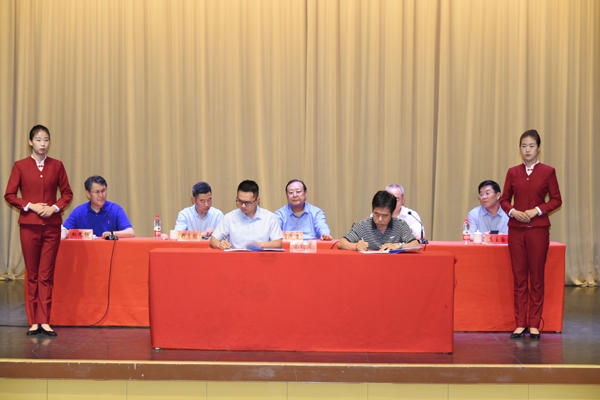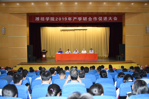 本网讯 6月12日,我校2019年产学研合作促进大会在闻韶楼报告厅举行。会上进行了合作项目签约及需求发布与成果推介。校长冯滨鲁、省教育厅科技处处长徐文广、潍坊市科技局局长高玉国出席开幕式并致辞。大会由副校长赵光强主持。省工业和信息化厅产业政策处一级调研员郑志鹄以及山东海化集团有限公司、潍坊东方钢管有限公司、中创软件工程股份有限公司等40多家知名企业的领导和专家出席大会。