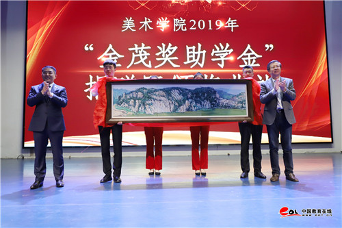 捐资助学是一件功在当代、利在千秋的善事,“金茂奖助学金”的设立不仅体现了潍坊金茂国际大酒店积极履行社会责任,与学院共同培养优秀人才的愿望,也为莘莘学子的成长成才提供更大的空间和舞台。美术学院师生将发挥好“金茂奖助学金”的激励引导作用,满怀感恩之心,不辱使命、砥砺奋进、以此次颁奖典礼为契机,认真学习贯彻习近平总书记在纪念“五四”运动一百周年大会上对青年提出的希望,继续发扬五四精神,以实现中华民族伟大复兴为己任,不辜负党的期望、人民期待、民族重托,不辜负这个伟大的时代,让青春焕发更加绚丽的光彩,为祖国七十华诞贡献青春力量!(陈菲菲)