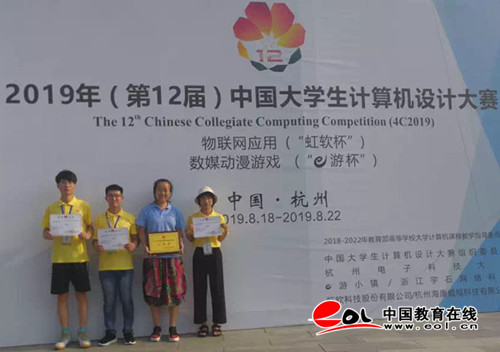 中国教育在线讯 8月18日至22日,2019年(第12届)中国大学生计算机设计大赛物联网应用“虹软杯”/数媒动漫游戏“E游杯”现场决赛在杭州电子科技大学下沙校区举行。由潍坊学院传媒学院徐向丽老师指导,2016级动画专业学生董清明、方婷、高明宇制作的动画作品《吞》在2019 年(第12 届)中国大学生计算机设计大赛中荣获“三等奖”。