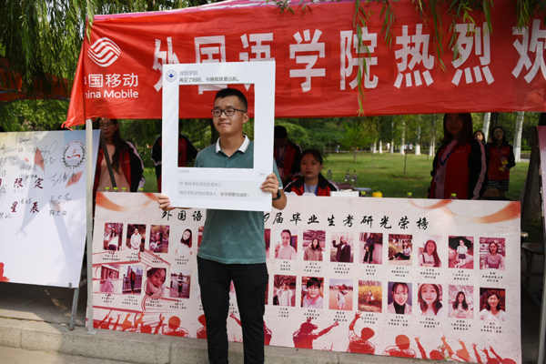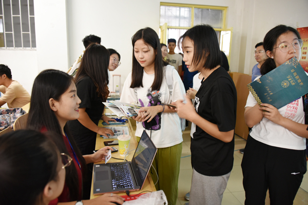 记者在迎新现场看到,今年的迎新场面可谓亮点纷呈,新意百出。为了庆祝新中国成立七十周年,对新生进行爱国主义教育,党委宣传部分别在世纪广场和餐厅组织了《我和我的祖国》快闪活动,吸引了不少新生和家长驻足观看;学生处提前印制了《学生手册·家长读本》,摘录学校的一些重要教育管理制度,让家长知晓,做好“家校合作育人”工作,助力学生健康成长;计算机工程学院在迎新报到处悬挂大型电子屏幕,播放视频短片,让学生和家长第一时间了解学院的办学情况;美术学院将入选全国美展的作品制作成精美的宣传展板;化学化工学院为新生开辟心语墙,新生将自己的心愿写在纸片上,贴到心语墙上;传媒学院、马克思主义学院制作了新生签到墙;外国语学院以我校官方微博发布的形式,让新生拍照留念,记录下开学第一天的美好瞬间;建工学院为新生制作的开学“书签”,给新生一份意外的惊喜;生物与农业工程学院、机电与车辆工程学院、经济管理学院制作了优秀学子、名师宣传展板和荣誉榜,让新生入学第一天就有了学习的榜样,奋斗的目标。