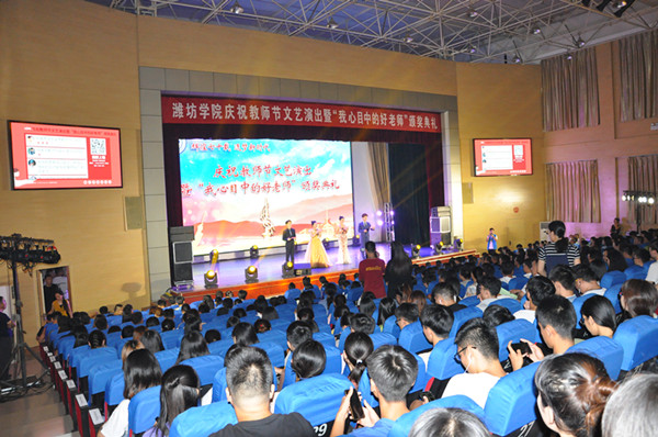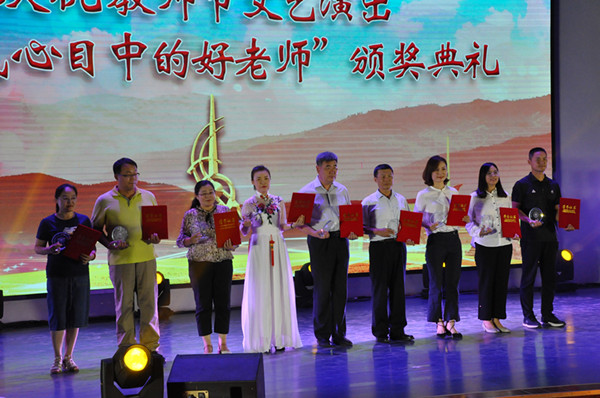 晚会现场,还对我校今年“我心目中的好老师”评选结果进行现场揭晓。由各学院选派的学生代表,走到台上为老师们鞠躬颁奖、深情拥抱,成为我校学子在教师节到来之际,送给老师们的一份诚挚礼物。