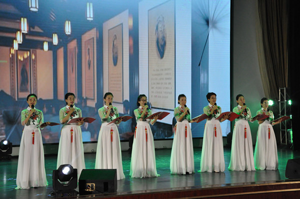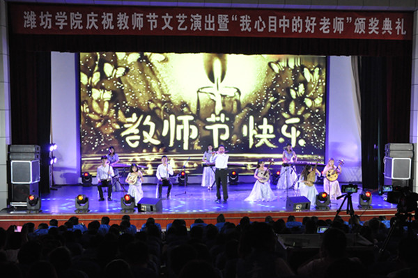 本网讯 为喜迎第35个教师节的到来,9月9日晚,由学校团委、工会主办,校学生会承办的庆祝教师节文艺演出暨“我心目中的好老师”颁奖典礼在我校图书馆报告厅举行。校领导冯滨鲁、丁子信、马茜华、赵光强出席,学校各单位各部门负责同志和来自各学院的教师、学生代表共500余人观看了演出。