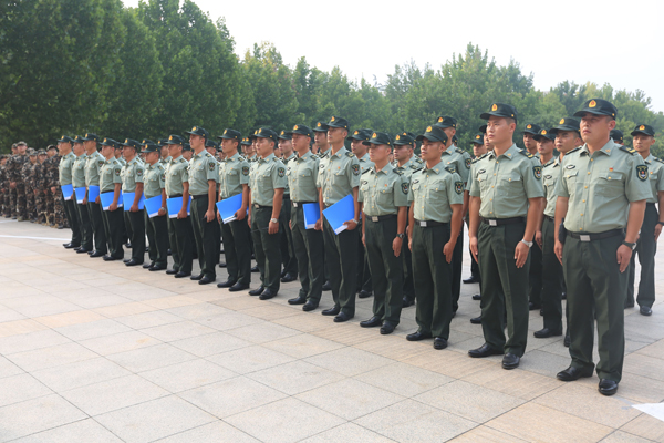本网讯 9月15日下午,帮助我校组织开展2019级新生军训的中国人民解放军驻潍某部63名官兵进驻我校。学校在行政楼后广场举行欢迎仪式,党委副书记王清明出席仪式。