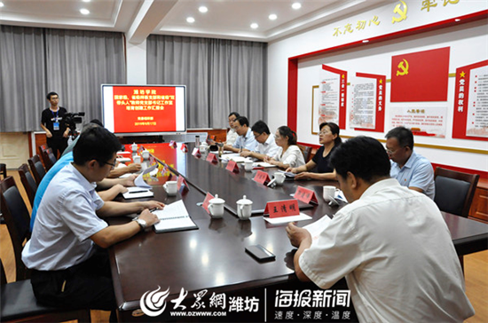 9月17日下午,潍坊学院国家级、省级“样板支部”和省级“双带头人”教师党支部书记工作室育建工作汇报会,在潍坊学院物理与光电工程学院二楼会议室举行,学校党委副书记王清明主持并讲话,党委组织部、育建单位党总支书记、副书记、党支部书记、工作室负责人和部分党员代表参加。