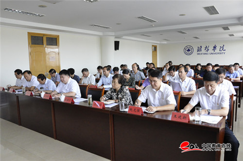 中国教育在线讯 9月19日,潍坊学院“不忘初心、牢记使命”主题教育领导小组工作会议在学校行政楼705会议室召开,省委第十二巡回指导组组长潘振文,潍坊学院主题教育领导小组组长、党委书记孙文亮出席会议并讲话。会议由潍坊学院主题教育领导小组副组长、校长冯滨鲁主持,潍坊学院主题教育领导小组副组长、党委副书记王清明宣读了学校“不忘初心、牢记使命”主题教育领导小组工作规则、领导小组办公室机构设置及工作职责。