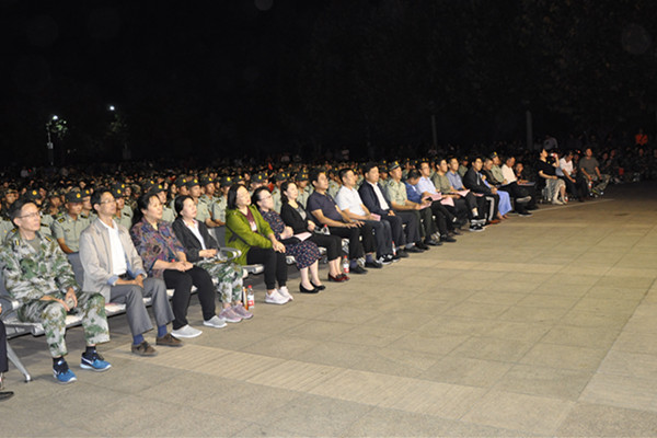 本网讯 为庆祝新中国成立70周年,9月25日晚,学校在行政楼北广场举行“我和我的祖国”2019级新生军训团合唱比赛。学校党委副书记王清明、施训部队首长出席活动现场,有关部门负责人以及全体军训教官和新生观看了比赛。