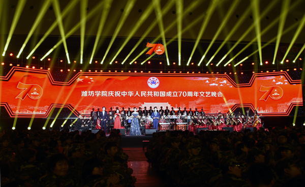晚会共分为三个乐章,通过歌曲、舞蹈、朗诵等节目形式,运用灯光、音响等舞台效果,歌颂新中国70年翻天覆地的变化,抒发对祖国的挚爱之情,展现潍院师生与国家同呼吸、共命运,不忘初心、牢记使命,担当作为、砥砺奋进,推动高等教育事业发展的豪情壮志。