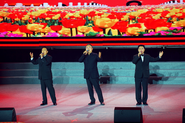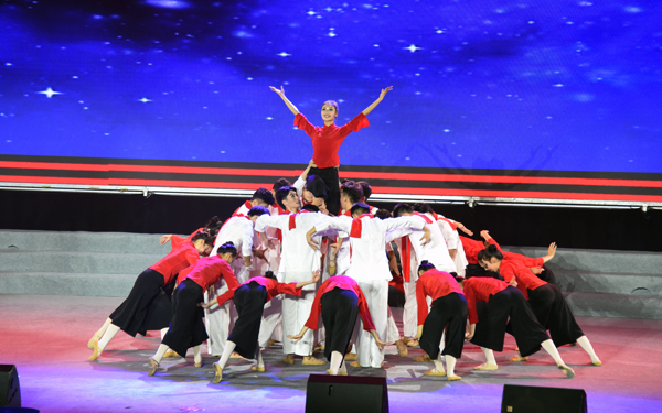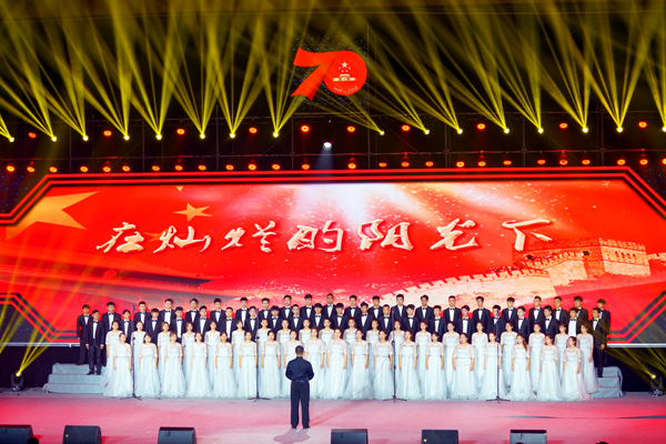 晚会在民乐合奏歌曲《我的祖国》中拉开帷幕,音乐学院合唱团用饱含深情的演唱,表达了对祖国母亲的无限热爱;诗朗诵《可爱的中国》抒发了共产党员的赤子情怀和远大抱负,勾起了在场观众对革命先烈的深切缅怀之情;歌曲《把一切献给党》表达了一名共产党员终身入党的坚定决心;《北京颂歌》带着历史的温度,表达了人们最醇厚的革命热情和最纯真的红色信仰;同学们以激荡而充满力量的舞姿在《红旗颂》中展现了不屈不挠和勇往直前的民族精神;老教授合唱团《天路》表达了退休老教师对祖国的深切情意;《不忘初心》《祖国万岁》《在灿烂的阳光下》一曲曲红色歌曲唱响了青年一代筑梦未来的主旋律,充分表达了我校师生爱党爱国爱校的家国情怀;《追寻》《春天的故事》《红旗飘飘》《好儿好女好江山》《今天是你的生日,我的中国》等一首首熟悉的旋律赢得了观众的阵阵欢呼和喝彩声,现场舞动的国旗和闪光灯汇聚成欢乐的海洋,将晚会的气氛推向了高潮。