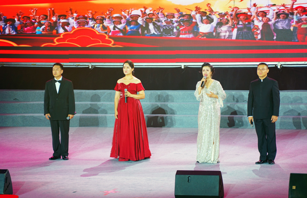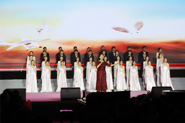晚会最后,《歌唱祖国》的旋律响起,全场观众挥舞着手中的五星红旗,深情地唱响献给祖国的生日歌。