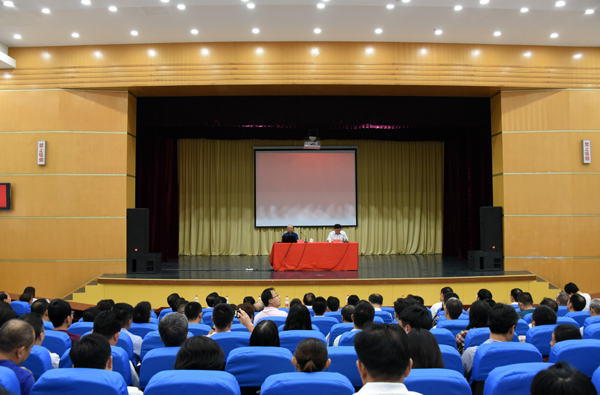 本网讯 为深入推进“不忘初心、牢记使命”主题教育,9月29日下午,学校在闻韶楼报告厅举行中国革命史和党史报告会,特邀王尽美烈士的孙子王军同志作了题为《祖孙代代奋勉传》的专题报告。全体校领导出席,全体处级干部、党支部书记培训班所有成员和部分学生党员代表现场聆听。