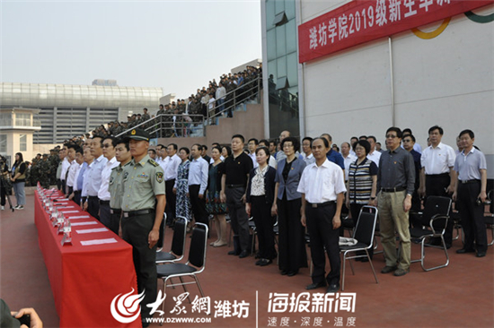 9月29日,潍坊学院2019级新生军训汇报表演暨表彰总结大会在学校体育场举行。潍坊学院军训团团长姚友歌少校、高新区人民武装部副部长齐瑞民、潍坊学院领导孙文亮、冯滨鲁、丁子信、马茜华、朱猷武、赵光强、王旭升、王建新出席了大会。大会由潍坊学院党委副书记王清明主持,各二级学院、各部门主要负责同志参加了大会。军训团参谋长张立强上尉主持课目表演。