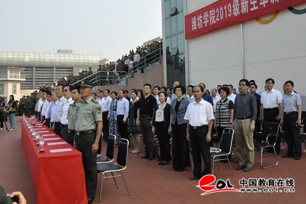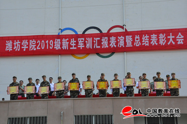 中国教育在线讯 9月29日,潍坊学院2019级新生军训汇报表演暨表彰总结大会在学校体育场举行。潍坊学院军训团团长姚友歌少校、高新区人民武装部副部长齐瑞民、潍坊学院领导孙文亮、冯滨鲁、丁子信、马茜华、朱猷武、赵光强、王旭升、王建新出席了大会。大会由潍坊学院党委副书记王清明主持,各二级学院、各部门主要负责同志参加了大会。军训团参谋长张立强上尉主持课目表演。