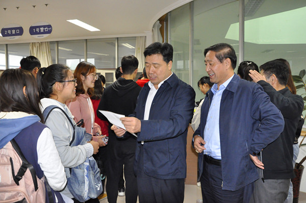 本网讯 10月10日下午,我校2019-2020学年勤工助学岗位招聘会在大学生事务中心举行,党委副书记王清明在招聘会现场,了解各单位用工情况,并与学生亲切交流,解答学生疑问。