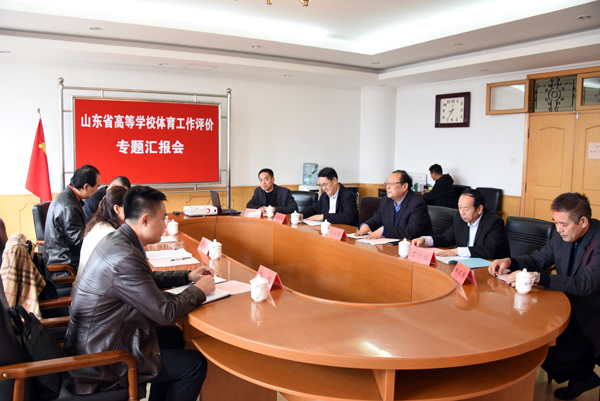 本网讯 11月12日,山东省教育厅专家组一行四人对我校体育工作进行现场考察评估。校长冯滨鲁,副校长丁子信、赵光强出席会议。