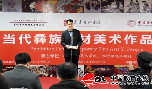 中国教育在线讯 1月6日上午,由中央民族大学主办,潍坊学院美术学院和科研处承办的2019年度国家艺术基金传播交流推广资助项目“当代彝族题材美术作品展”在潍坊学院美术馆举行。潍坊学院校长冯滨鲁,纪委书记王建新参观了展览。潍坊学院副校长赵光强致开幕词。
