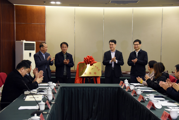 赵光强与省、市人社部门领导一同为“鸢都高校人才工作联盟秘书处”揭牌。省人社厅相关处室领导介绍了全省人才工作的新政策、新举措,与会人员就高校人事人才工作进行了座谈交流。