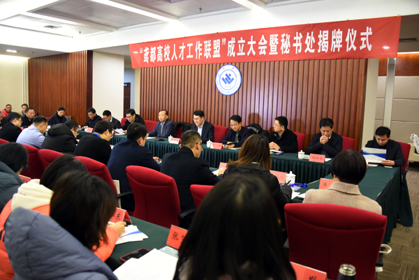 本网讯 1月11日,驻潍高校“鸢都高校人才工作联盟”成立大会在我校举行。副校长赵光强,省、市人社部门领导,市人才工作领导小组办公室负责同志、驻潍18所高校代表出席会议。