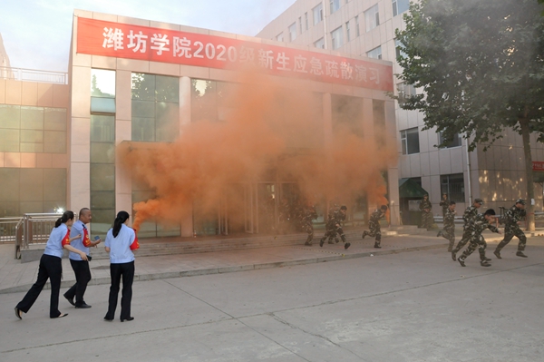 本网讯 为了实现安全知识“进课堂”,进一步提高学生逃生自救和各职能部门处理突发事件的能力,9月28日,学校在弘德书院举行2020级新生应急疏散演习。党委副书记王清明担任总指挥,军训团、学生工作处、保卫处、各二级学院、弘德书院的相关负责同志在主席台检阅演习,全体军训教官及2020级全体新生参与了本次演习。