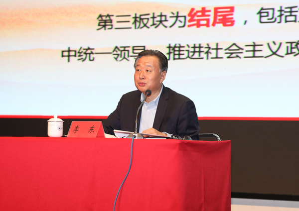 李东紧扣党的十九届五中全会主题,从《建议》的起草过程和主要框架,我国进入新发展阶段的重大意义、有利条件和重要特征,2035年远景目标和“十四五”时期我国发展的指导方针、主要目标、重点任务,构建新发展格局的战略构想和重要着力点等方面进行宣讲解读。