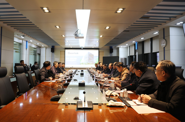 本网讯 12月7日,学校党委书记李东,党委副书记、校长冯滨鲁,党委副书记王清明,党委委员丁子信、马茜华、赵光强、王建新、李连成、单振涛,以及学校党委理论学习中心组(扩大)其他成员,以“走出去”的方式到歌尔股份有限公司开展现场教学,深入了解企业的发展现状、发展历程、企业文化,共同探讨双方合作的方式。歌尔股份有限公司董事长姜滨等陪同参观并参加座谈交流。
