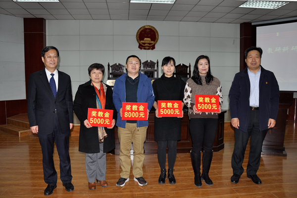 本网讯 12月15日,第三届“求是和信律师法学教育基金”颁奖暨“潍坊学院法学院-山东求是和信律师事务所公司治理与股权实务研究所”揭牌仪式在人合楼模拟法庭顺利举行。校党委副书记王清明出席活动。求是和信律所领导、律师代表,我校学生处、法学院负责同志及师生代表参加了活动。