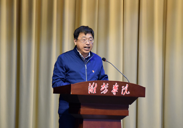 冯滨鲁围绕“抓牢推动高质量发展是当前和今后一个时期学校事业发展这一根本任务、抓实建成优势特色突出的应用型本科高校这一重要工作、抓住凝练办学特色进一步推动学校高质量发展这一重点突破、抓紧推动学校高质量发展接力棒这一重大责任”四个方面深刻解读了如何抓好学习成果落实工作。他讲到,凝练办学特色,实现高质量发展重点突破,要加快人才培养和引进,打造高水平师资队伍;要加快专业结构调整,提升专业建设内涵,支持应用型大学建设;要落实立德树人根本任务,实现人才培养的高质量发展;要主动对接服务,产学研用结合,实现学校与政企行高质量发展同向同行;要深化内部体制机制改革,推进治理体系和治理能力现代化;要加强党的建设,以高质量党的建设统领业务工作高质量发展。充分发挥党委领导核心作用、党总支的政治核心作用、党支部的战斗堡垒作用、党员的先锋模范作用。