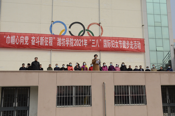本网讯 为庆祝“三八”国际妇女节,丰富我校女教职工的业余文化生活,增强凝聚力,展示我校女教职工“自尊、自信、自立、自强”的精神风貌,学校工会、妇委会举办“巾帼心向党 奋斗新征程”潍坊学院2021年“三八”国际妇女节健步走活动。