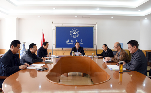 本网讯 3月29日,校长冯滨鲁主持召开应用型本科高校建设推进会,重点围绕《潍坊学院应用型本科高校建设实施方案》、办学特色凝炼、经费使用预算等内容开展研讨。副校长丁子信及其他校内应用型本科高校建设专家指导组成员参加会议。